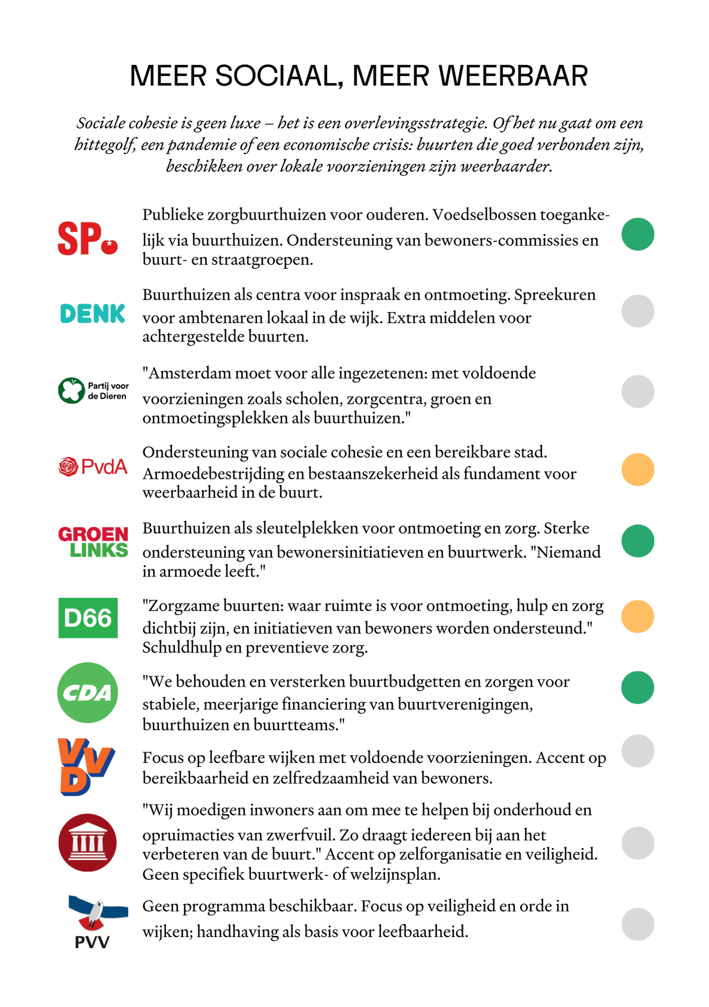 Een paar kanttekeningen: niet alle partijen zijn opgenomen, de selectie is gebaseerd op het kiezersprofiel in West en Nieuw-West, met een redelijke balans tussen links en rechts.