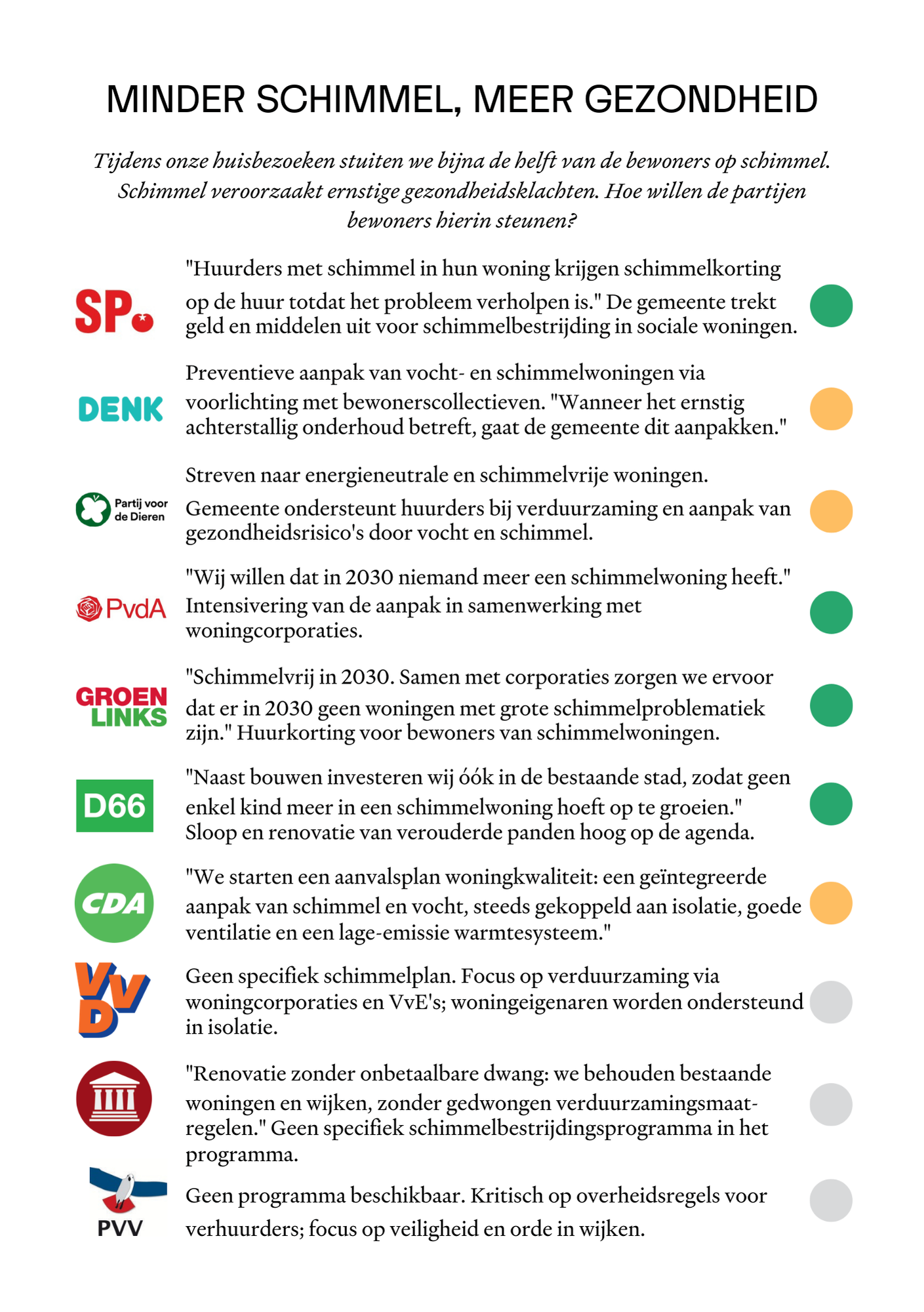 Per thema zie je hoeveel aandacht een partij eraan geeft en wat partijen concreet voor bewoners willen betekenen. Bovenaan staat een beknopt overzicht. Scroll naar beneden om de overzichten per thema te vinden.